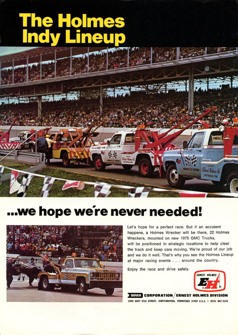 Part of the excellent design of the 440 was running the support cable pulley to the end of the extension so that the boom is very resistant to bending. Although only rated at 1000 lbs at full extension it could easily pick up twice that with no issues. Useful for light recoveries, pulling engines, and floating damaged cars the extended boom was also popular at race tracks. Using the Holmes manufactured HD winch with the rapid reverse and massive worm gear that was developed for the 400 RW it far outclassed all competitors. The first generation (starting in 1966) had the square tailgate with a single D-ring in the center. By the mid 60’s, with the development of the twin boom 480 an angled tailgate with the twin D-rings allowed for a tight turning circle when loaded.
